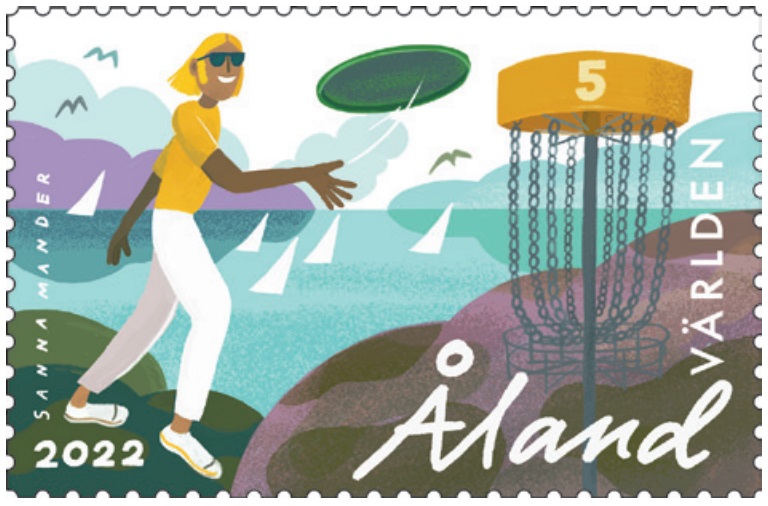 Ahvenanmaan maakuntapäivät kokoontuivat ensimmäisen kerran 9.6.1922. Itsehallinto täyttää ensi vuonna 100 vuotta, ja Åland Post julkaisee kansallispäivänä 9.6. kesäaiheisen pienoisarkin, jossa saarimaakunta näyttäytyy vanhan tutun ja uuden nykyaikaisen välillä. Alla olevan kuvan postimerkissä ensi vuoden julkaisuohjelmasta aiheena on frisbeegolf. #53