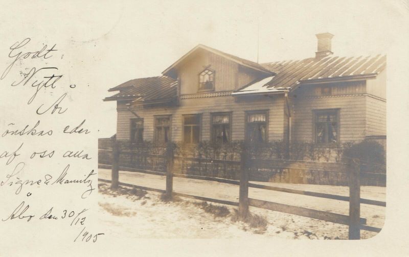 Jaakko Pietilä lähetti Abophilin toimitukseen uudenvuodenkortin, joka on lähetetty Turusta Trosaan Ruotsiin. Kortti on päivätty aatonaattona 1905 ja postitettu kahdella venäläisellä 2 kopeekan postimerkillä. Onkohan rakennus Turusta? #47
