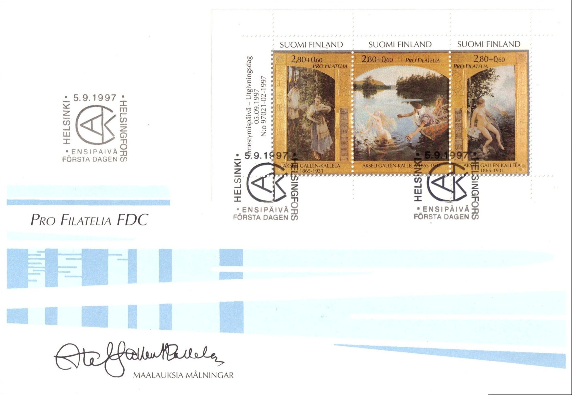 Suomessa ilmestyi vuosina 1991–99 vuorovuosin viisi lisämaksullista Pro Filatelia -julkaisua. Lisämaksulla tuettiin maamme filateelista työtä ja harrastusta. Merkeissä on kultakauden taiteilijoiden maalauksia Ateneumin kokoelmista, ja graafinen suunnittelija on kaikissa Pentti Rahikainen.